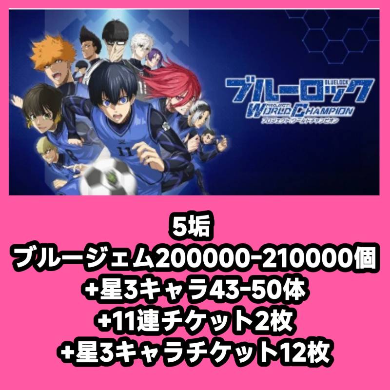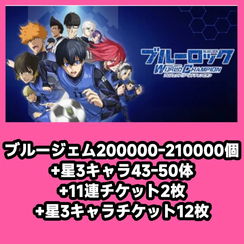 ブルージェム200000-210000個+星3キャラ43-50体+11連チケット2枚+星3キャラチケ¥500 -